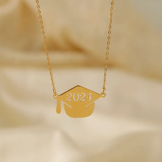 Collar de Acero Inoxidable, Boutique, Graduación, 2024, Estilo Casual, Birrete, Números, Enchapado, Bisutería Fina, Unisexo, Colgante