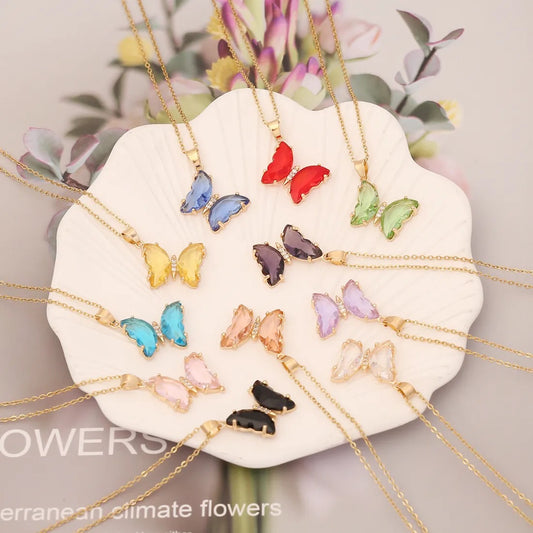 Precio habitual $ 40.00 MXNPrecio habitualPrecio unitario / por$ 55.00 MXNPrecio de oferta $ 40.00 MXNCollar de Acero Inoxidable, Boutique, Estilo Lindo, Mariposa, Vidrio, Cobre, Bisutería Fina, Unisexo, Colgante, Color Transparente, Sólido