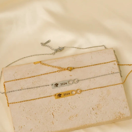 Collar de Acero Inoxidable, Boutique, Graduación, 2024, Infinito, Estilo Casual, Birrete, Números, Enchapado, Bisutería Fina, Unisexo, Colgante