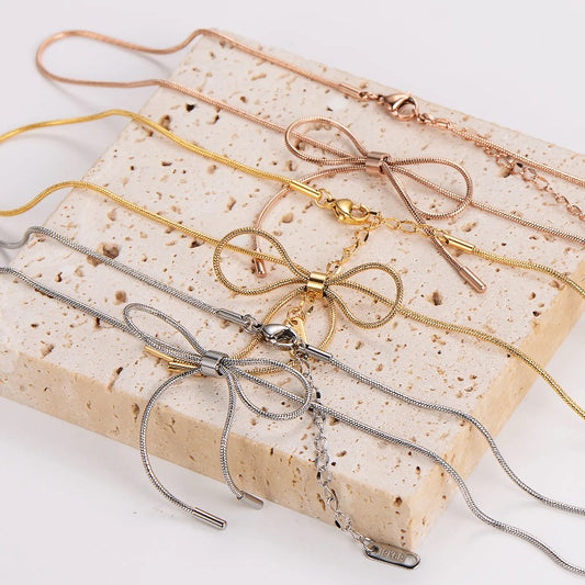 Collar de Acero Inoxidable, Boutique, Estilo Elegante, Moño, Enchapado, Nudo de Lazo, Bisutería Fina, Unisexo, Colgante, Moda Coquette