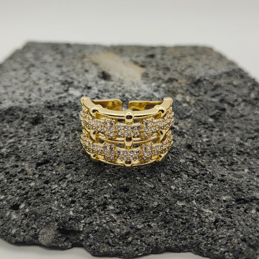 Anillo de Acero Inoxidable 304, Estilo Elegante, Circón, Tendencia, Boutique, Geométrico, Apertura Ajustable, Unisexo, Moda