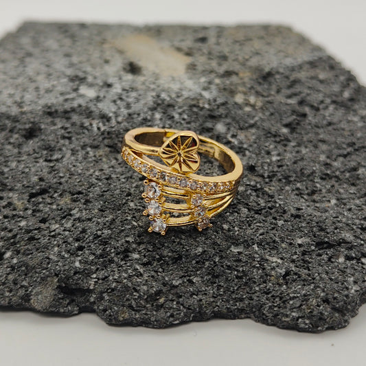 Anillo de Acero Inoxidable 304, Estilo Elegante, Circón, Tendencia, Boutique, Forma de Flor, Geométrico, Apertura Ajustable, Pétalos, Unisexo, Moda