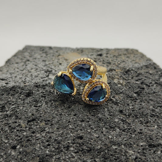 Anillo de Acero Inoxidable 304, Estilo Elegante, Circón, Tendencia, Boutique, Triple Gota, Geométrico, Apertura Ajustable, Unisexo, Moda