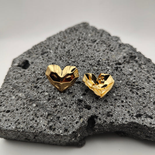 Aretes de Acero Inoxidable 304, Color Dorado, Estilo Moderno, Corazón con Doblez, Tendencia, Boutique, Unisexo, Moda