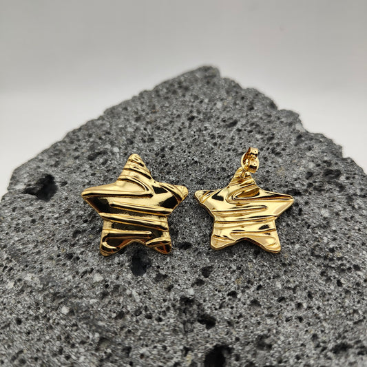 Aretes de Acero Inoxidable 304, Color Dorado, Estilo Moderno, Estrella, Tendencia, Boutique, Unisexo, Moda