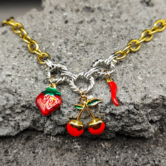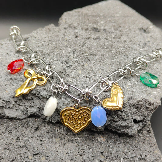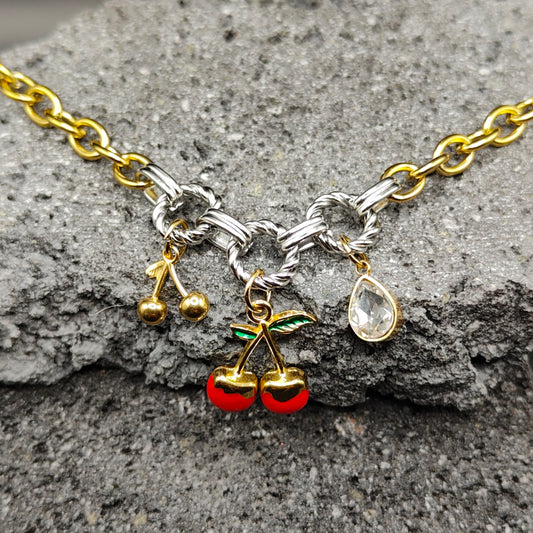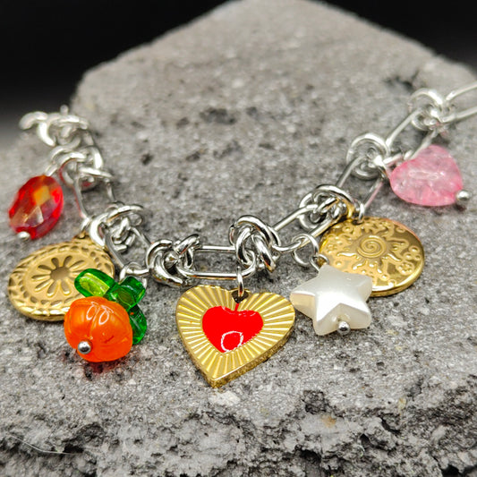 Pulsera de Acero Inoxidable 304, Color Plateado, Dorado, Estilo Elegante, Boutique, Tendencia, Dijes con Forma de Corazón, Fruta, Piedra Artificial, Unisexo, Moda