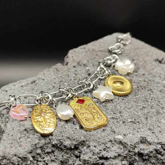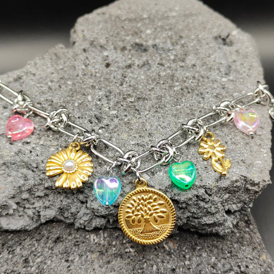 Pulsera de Acero Inoxidable 304, Color Plateado, Dorado, Estilo Elegante, Boutique, Tendencia, Dijes con Forma de Corazón, Piedra Artificial, Árbol, Flor, Unisexo, Moda