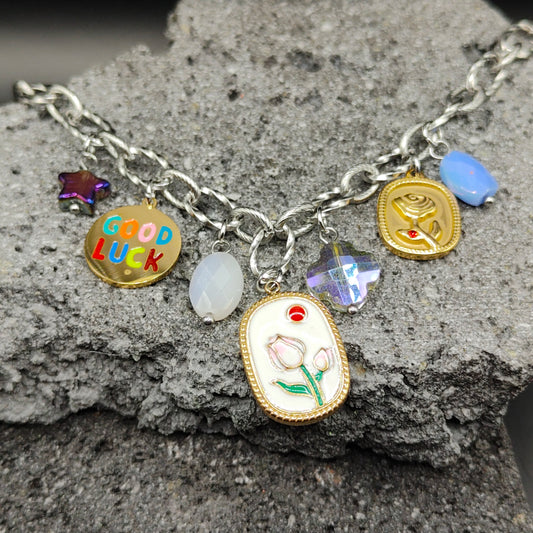 Pulsera de Acero Inoxidable 304, Color Plateado, Dorado, Estilo Elegante, Boutique, Tendencia, Dijes, Trébol, Piedra Artificial, Estrella, Unisexo, Moda