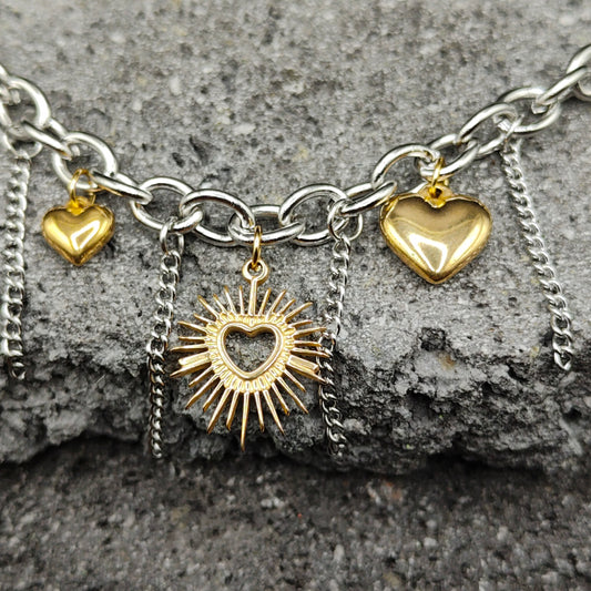 Pulsera de Acero Inoxidable 304, Color Plateado, Dorado, Estilo Moderno, Boutique, Forma de Corazón, Tendencia, Dijes, Titanio, Unisexo, Moda