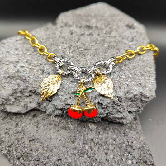 Pulsera de Acero Inoxidable 304, Color Dorado, Plateado, Estilo Elegante, Boutique, Tendencia, Dijes, Hojas, Titanio, Piedra Artificial, Frutas, Unisexo, Moda