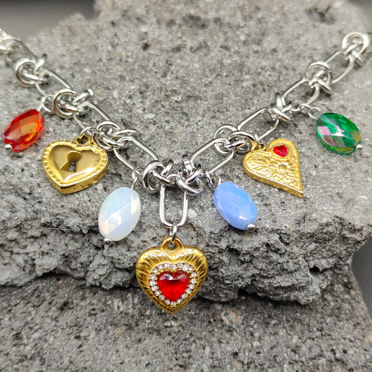 Pulsera de Acero Inoxidable 304, Color Plateado, Dorado, Estilo Elegante, Boutique, Tendencia, Dijes con Forma de Corazón, Piedra Artificial, Unisexo, Moda
