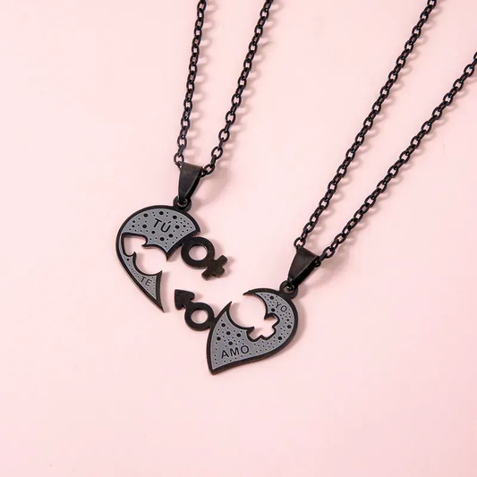 Collar para Parejas, Dúo, Frase Grabada, Forma de Corazón, Regalo, Novios, Esposos, Uso Diario, Regalo, Colgante, Moda