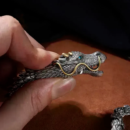 Pulsera para Hombre, Bisutería, Estilo Vintage, Dragón, Acabado Metal Antiguo, Retro, Cobre, Regalo, Unisexo