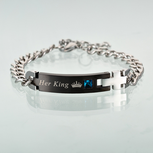 Pulsera para Parejas, Acero Inoxidable, Dúo, Frase Grabada, Su Rey, Su Reina, Corona, Regalo, Novios, Regalo, Esposos, Ajustable